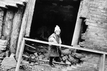 ”It’s not a big house. It isn’t ours. It’s somebody else’s. Our apartment is destroyed. It was on Bogdan Khmelnitski Street. The drugs men and the soldiers destroyed it - not only ours - they destroyed lots of apartments. The soldiers still shoot during the night and in the morning. Where? I don’t know. I just hear the shooting. Sometimes bullets hit our backyard, but so far, at least for several weeks, nobody has been killed. When they shoot I’m always afraid that it will hit our home. Mum is afraid too, but my father isn’t.